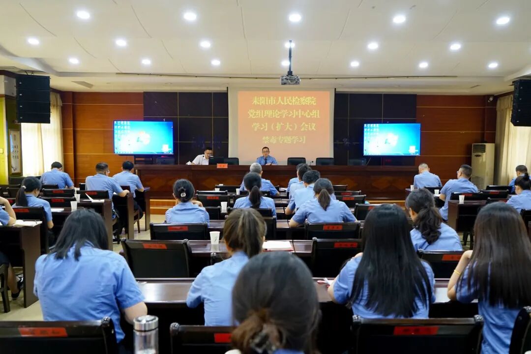 6月15日,耒阳市人民检察院以党组理论学习中心组学习(扩大)会形式开展禁毒专题学习,邀请耒阳市社会化禁毒事务中心主任肖奎进行授课。