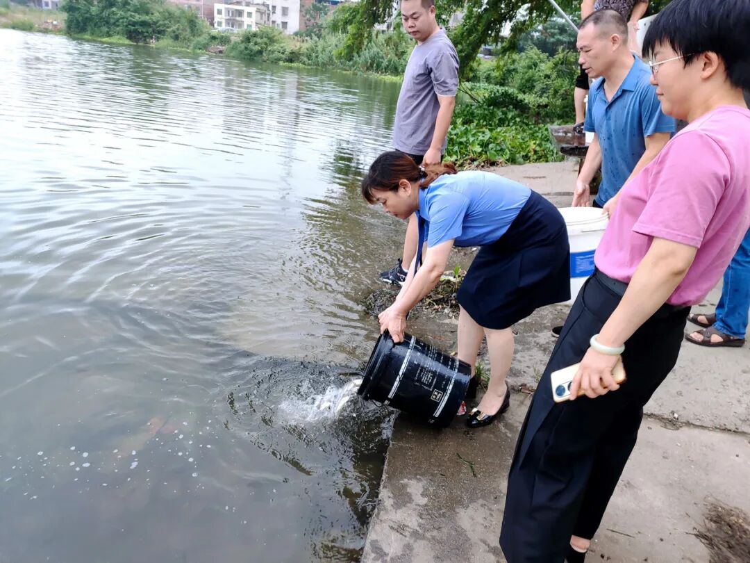 8月2日,耒阳市检察院携手耒阳市农业农村局、“益心为公”检察云平台志愿者,在耒水河边开展生态环境损害赔偿增殖放流活动。