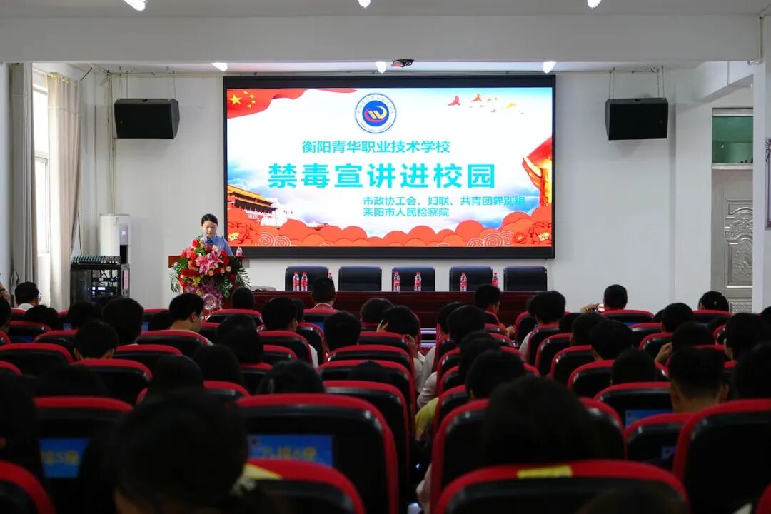 第37个国际禁毒日即将来临之际,6月13日,耒阳市检察院联合耒阳市政协走进衡阳青华职业技术学校,以“过无毒暑假,迎美好人生”为主题,为200余名师生开展禁毒法治宣传,共奏“青春无毒音”。