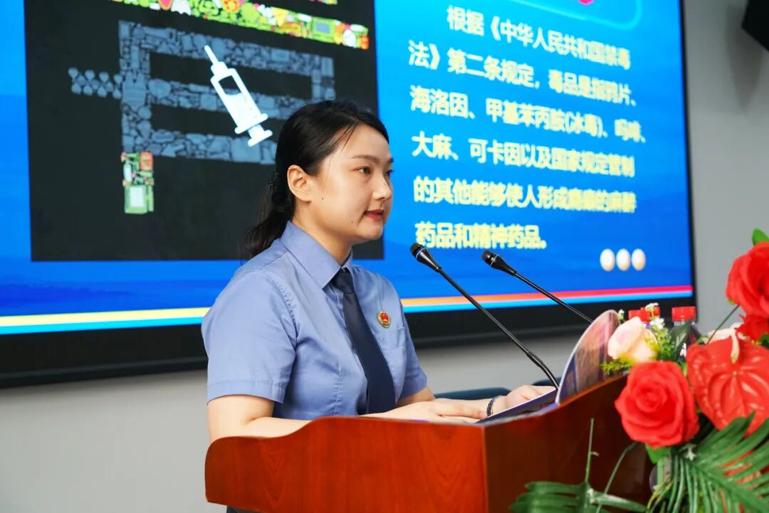 活动以一堂干货满满的禁毒课拉开帷幕。检察干警以图文并茂的方式,围绕毒品的种类、特征、危害展开了详细讲解,并结合禁毒宣传短片和真实案例,告诫大家应谨慎交友、远离非正规娱乐场所。看着一张张披着食品外衣的毒品图片、一个个鲜活的禁毒案例,在场师生对毒品危害和防毒拒毒措施有了更深入、直观、系统的了解。