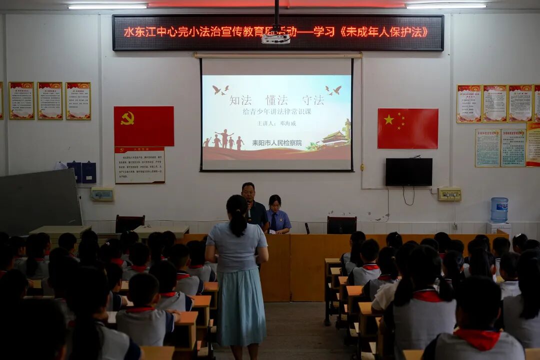 金秋九月开学季,扬帆起航正当时。9月13日,耒阳市人民检察院未成年人检察工作组走进水东江中心完小,以“知法 懂法 守法”为主题,给200余名学生带来了一场精彩纷呈的“开学第一课”,为学生们敲响法治“预备铃”。