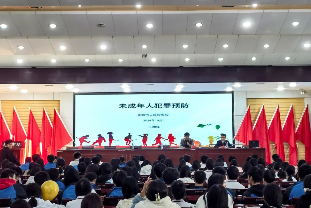 为进一步加强青少年法治教育,提高学生法律意识,10月24日,耒阳市人民检察院未成年人检察工作组走进耒阳市中等职业技术学校,以“未成年人犯罪预防”为主题开展专题法治讲座。