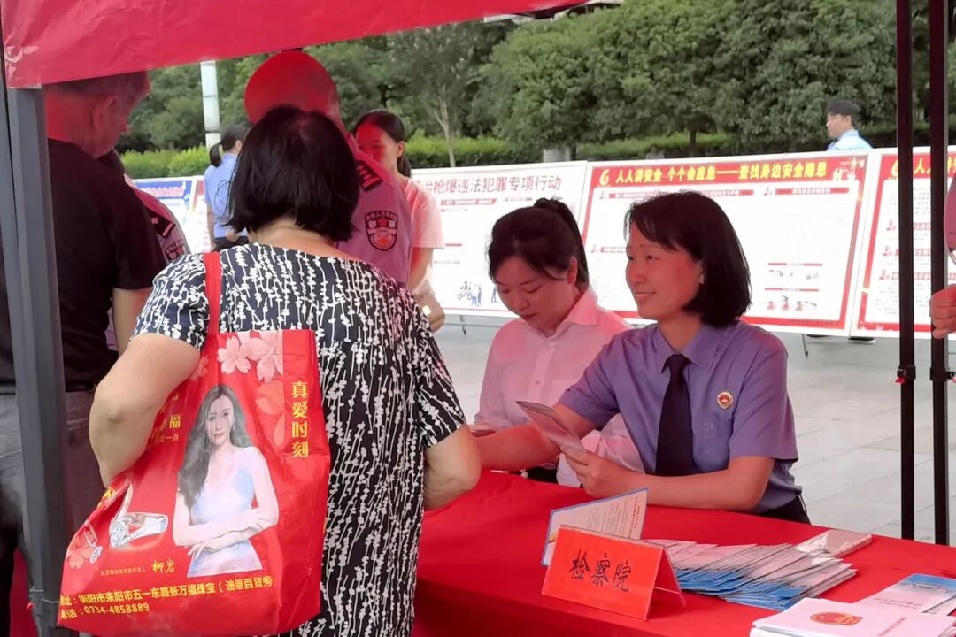 6月16日,耒阳市人民检察院组织检察干警积极参与耒阳市防范非法集资集中宣传活动,着力提升社会公众对相关风险的防范能力。