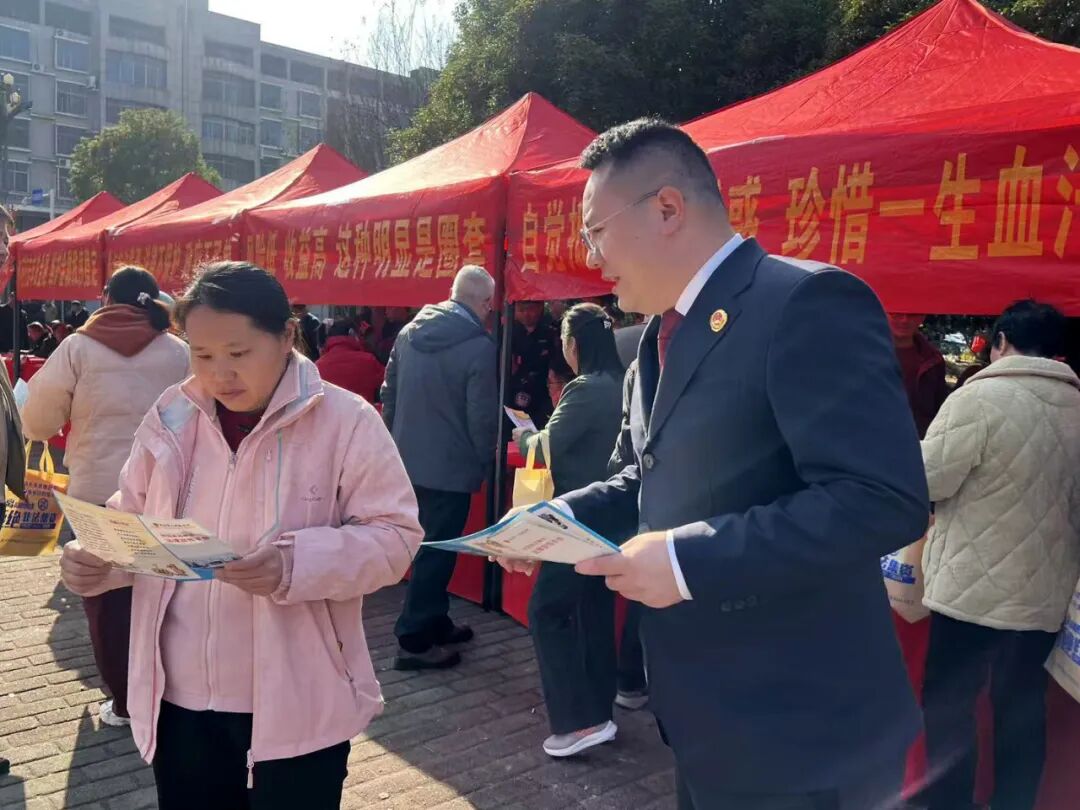 1月8日,耒阳市人民检察院组织检察干警积极参与耒阳市“两节”期间防范非法集资集中宣传活动,面对面为市民筑牢金融安全防线。