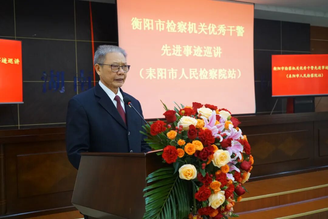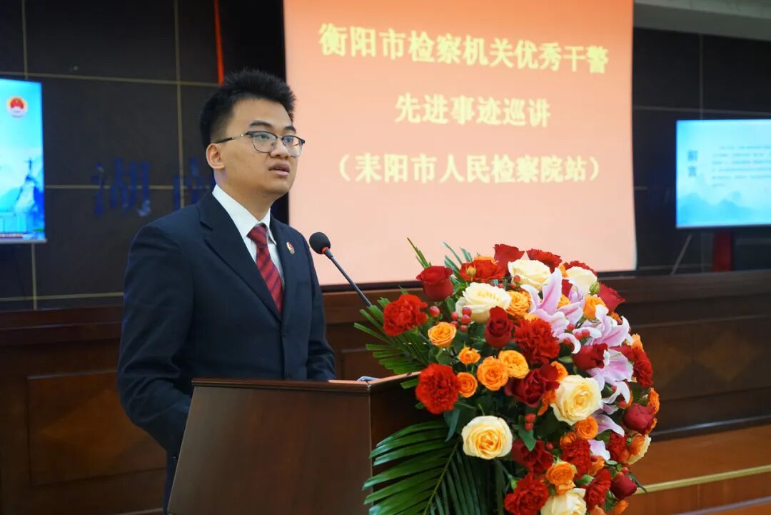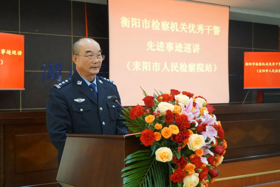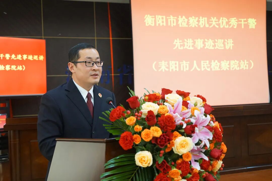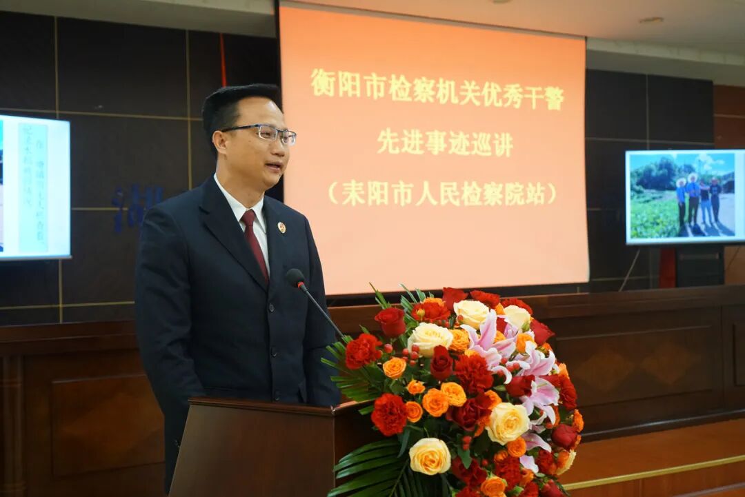 为充分发挥先进典型的正向激励和示范引领作用,12月4日,衡阳市检察机关优秀干警先进事迹宣讲团走进耒阳市人民检察院,开展巡回宣讲活动。此次活动由衡阳市人民检察院政治部副主任李建辉主持,耒阳市人民检察院全体检察人员参会聆听。