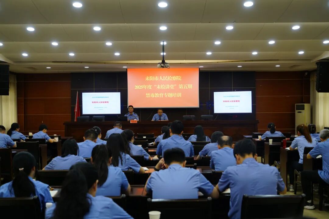 6月18日,在第38个国际禁毒日即将来临之际,耒阳市人民检察院开展禁毒教育专题培训,特邀衡阳市强制隔离戒毒所宣讲团讲师刘亚军作专题授课,该院全体检察人员参加。